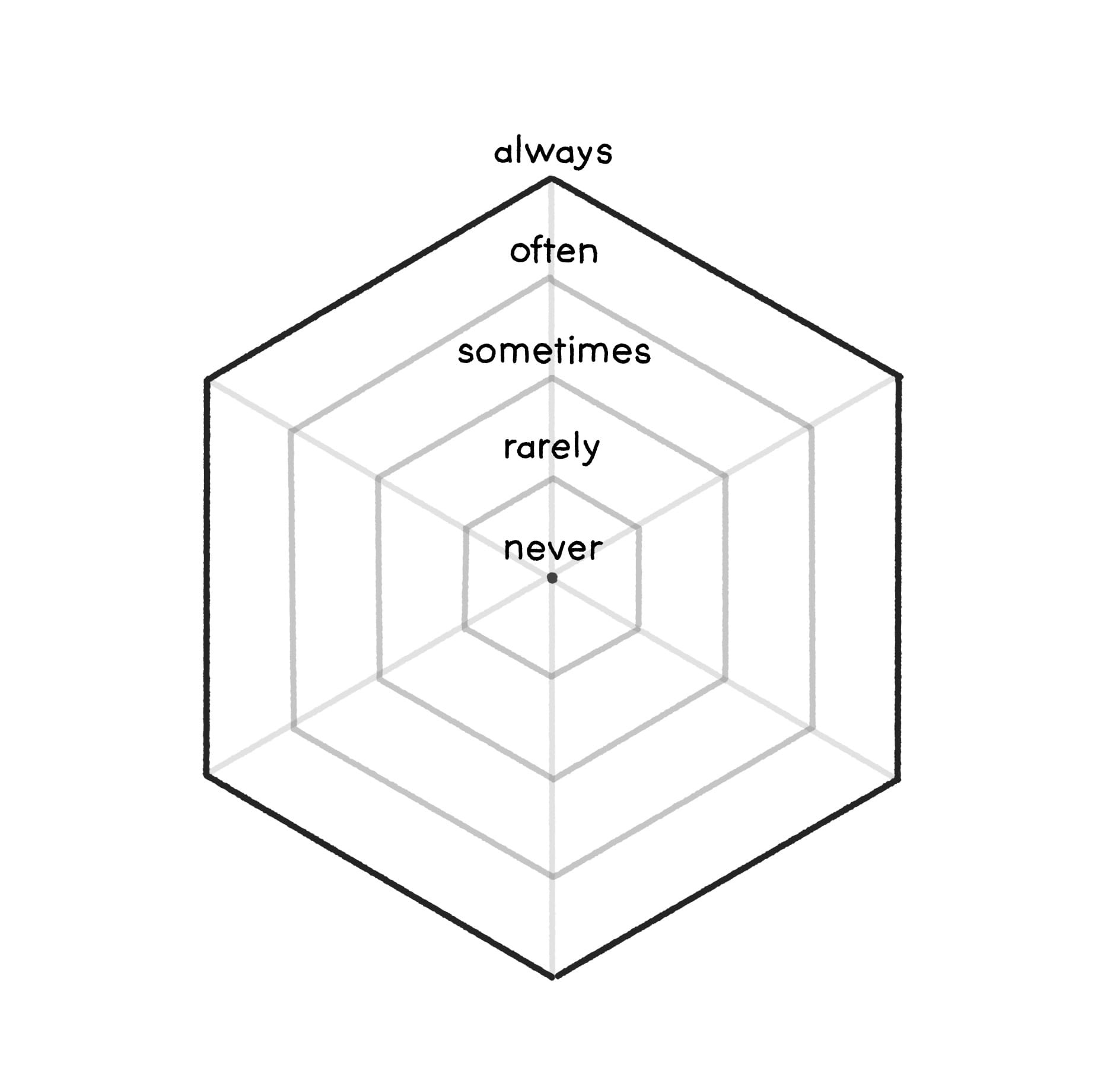 For each "focus" I will plot a score of 0-4 on the graph as defined below, a 0 meaning "this activity never focuses on this" and a 4 meaning "this activity always focuses on this" with a few steps in between for ambiguity.