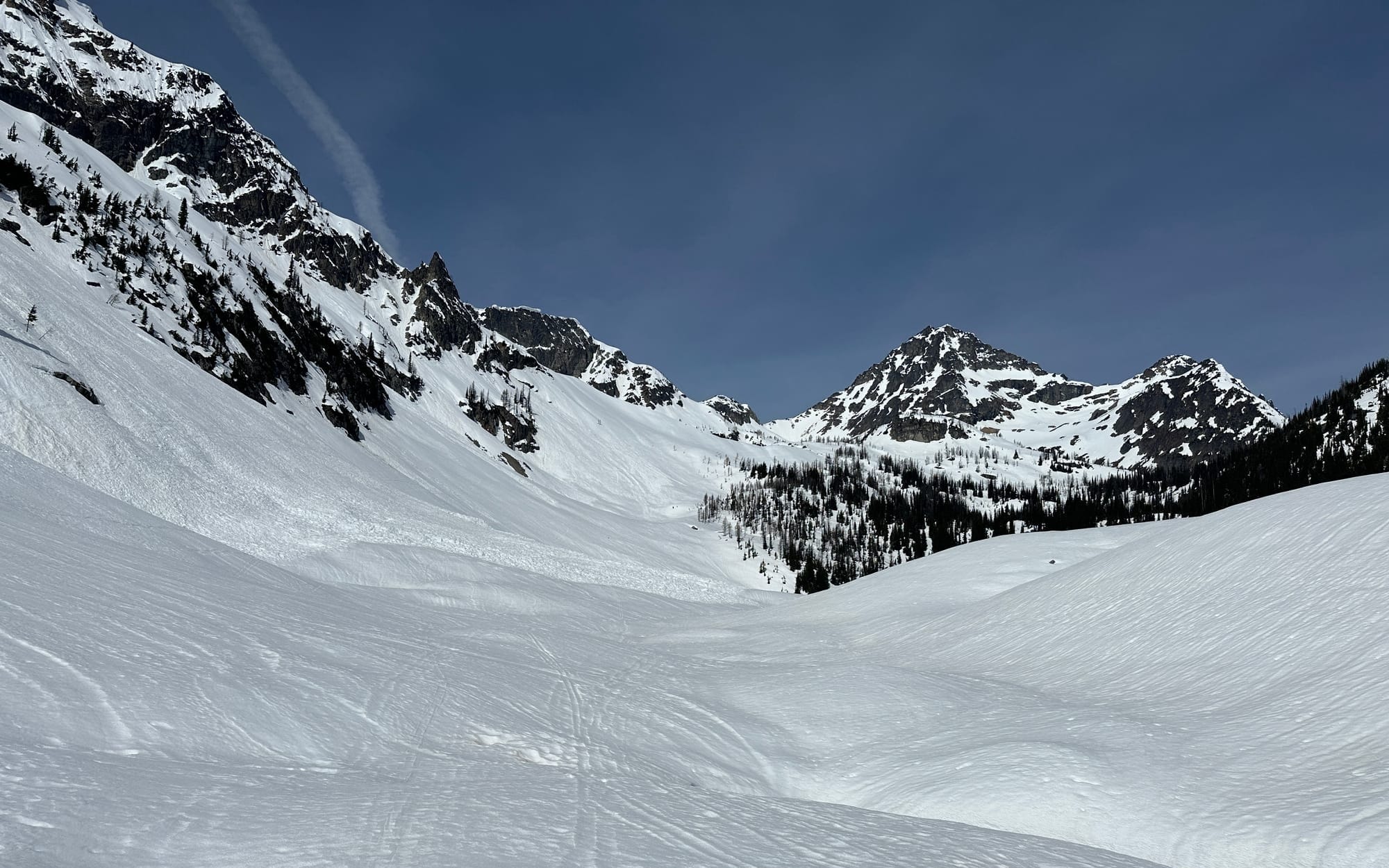 I drove out early, leaving Seattle around 3:30am to arrive before 7am. We were planning as best we could around our expectations of the corn cycle, trying to maximize the quality of the skiing we would receive on the various aspects. The day was looking perfect while I drove up Highway 20, some wispy high clouds, but mostly blue skies. The stoke grew and grew as the mountains did around me.