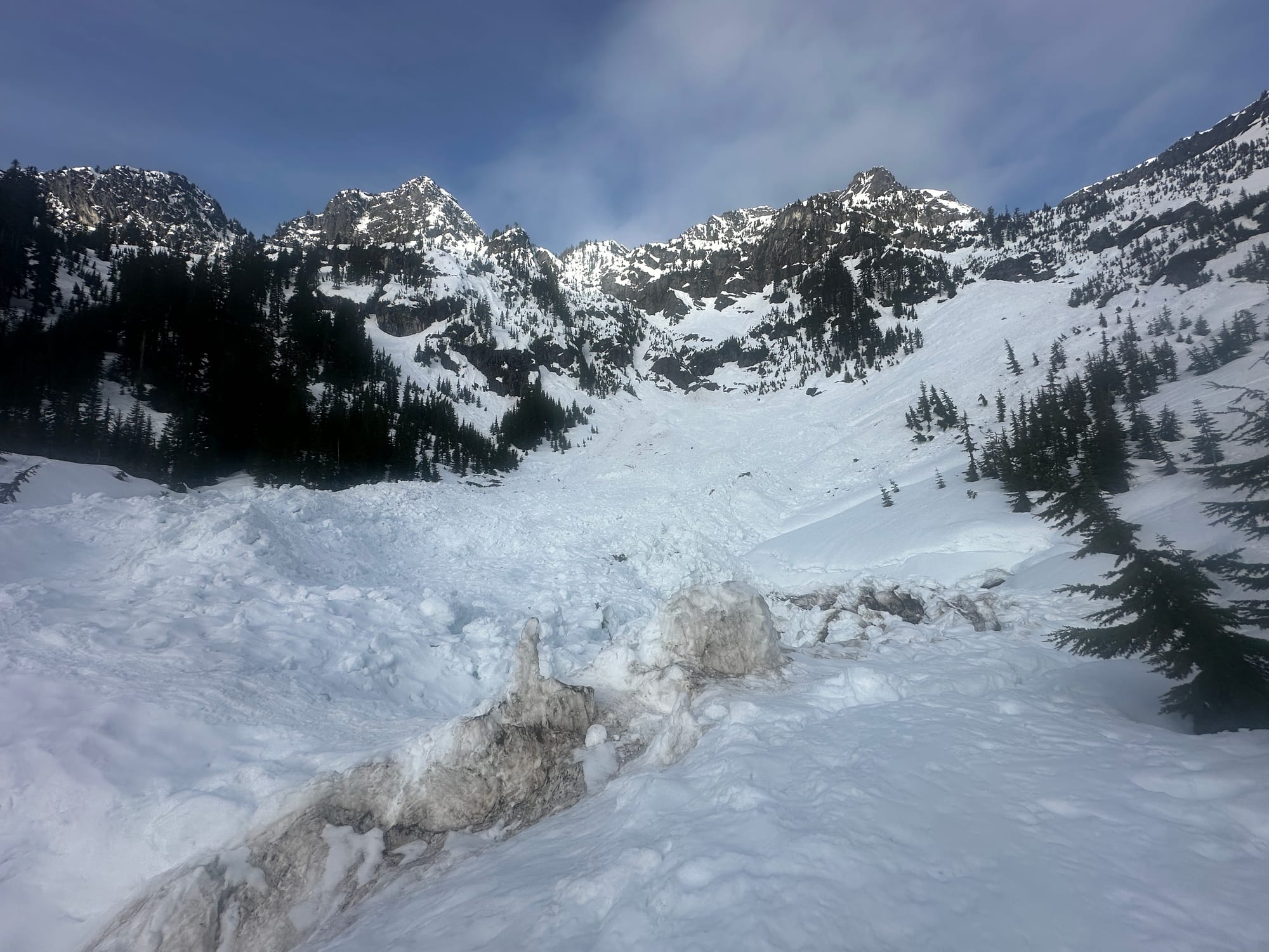 We had seen all of the reports of recent avalanche activity in the basin, but seeing it in person was shocking. Two weeks of high-temps had caused nearly everything to shed down and out of Chair Peak's main slide paths, and rippling waves of snow were piled up on top of Source Lake.